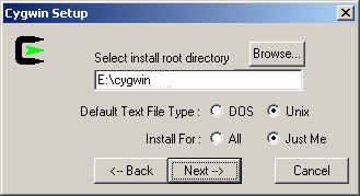 Install in the directory that you prefer. Do not worry about it, this version of cygwin will mount directories as *nix later. I use these choices: